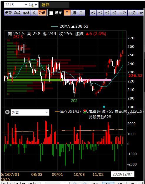 很聰明 → 觸及 260 ,則已漲 25%,又逢前高,整理數日,甚至回跌 至 245 機會高。短線高手脫手好時機。